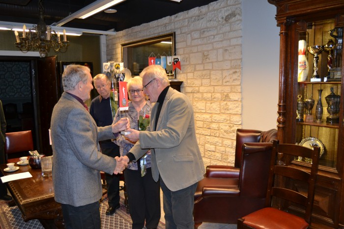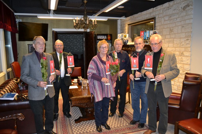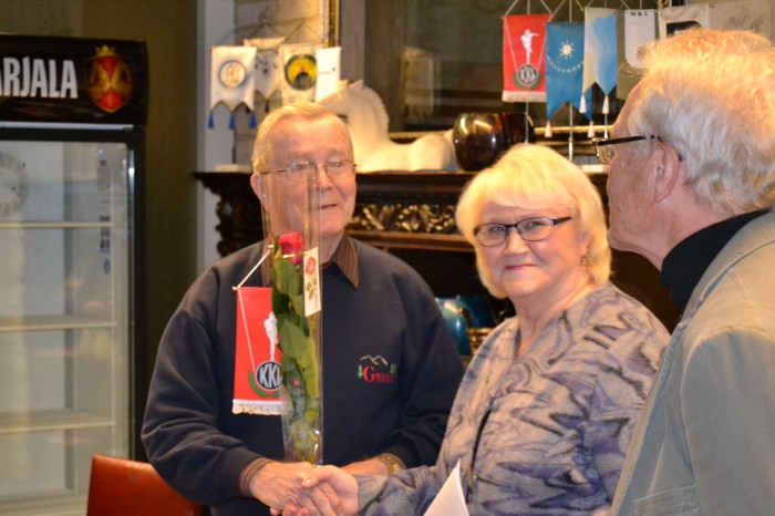 Huomionosoituksena Kouvolan keilailuliiton johtokunta ojensi kukkakimput, pitkäaikaiselle edelliselle puheenjohtajalle Seppo Karhulle, sekä pitkäaikaiselle edelliselle sihteerille Maarit Kotolalle.