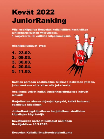 Junioriharjoitusten yhteydessä kilpailtavaa JuniorRankingia pelataan myös keväällä 2022. Kilpailut kisaillaan viidesti tulevan kevään aikana, aina junioriharjoitusten yhteydessä. Ei erillistä kilpailumaksua.